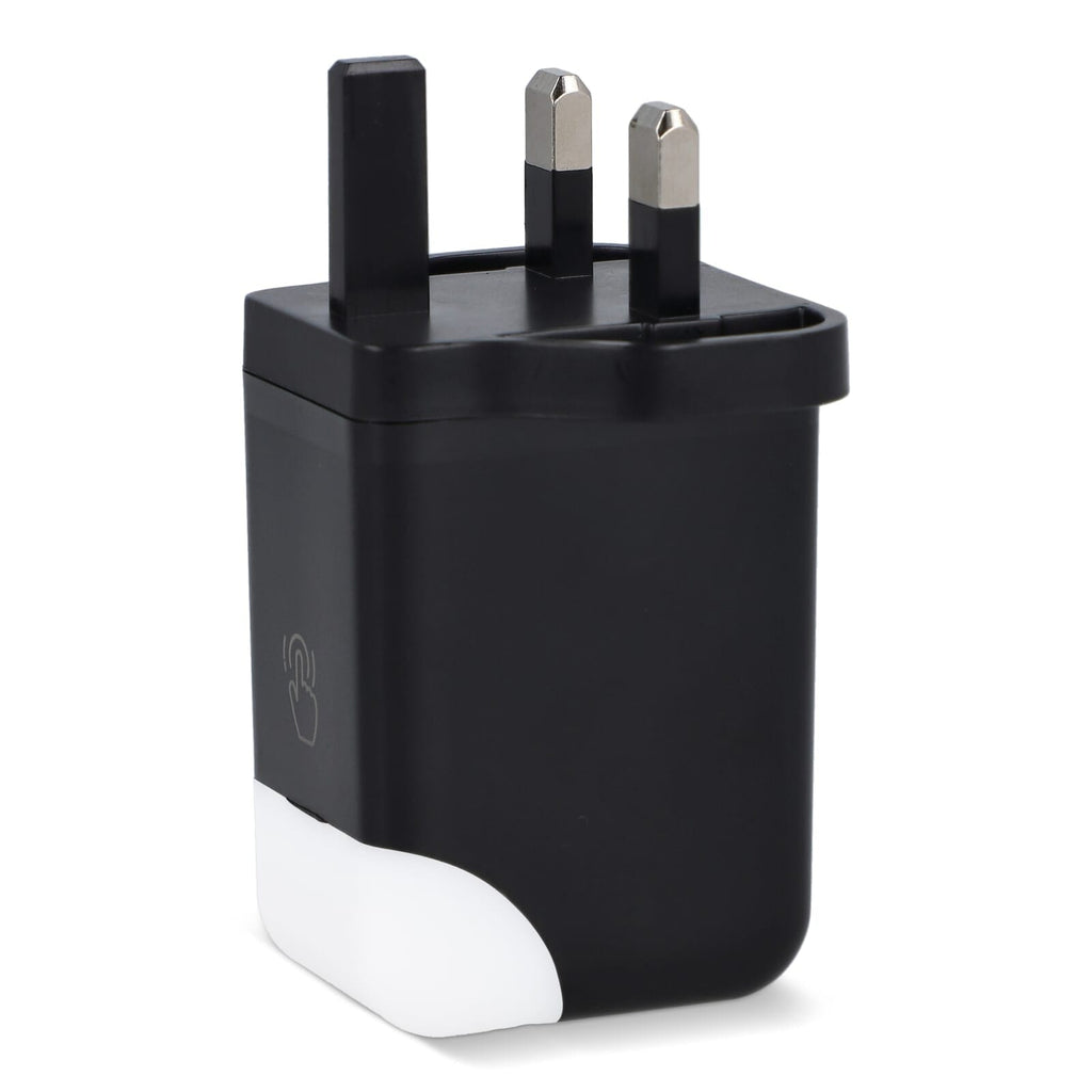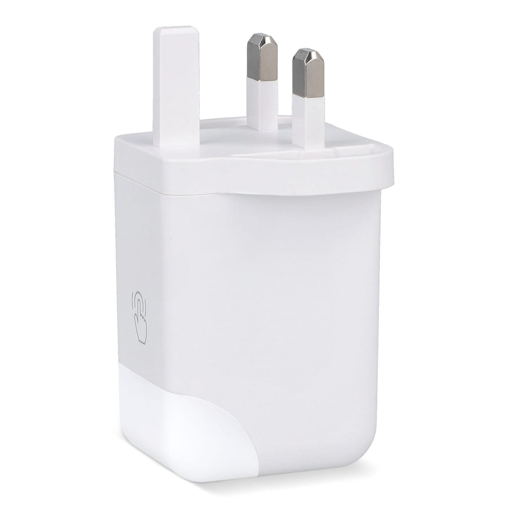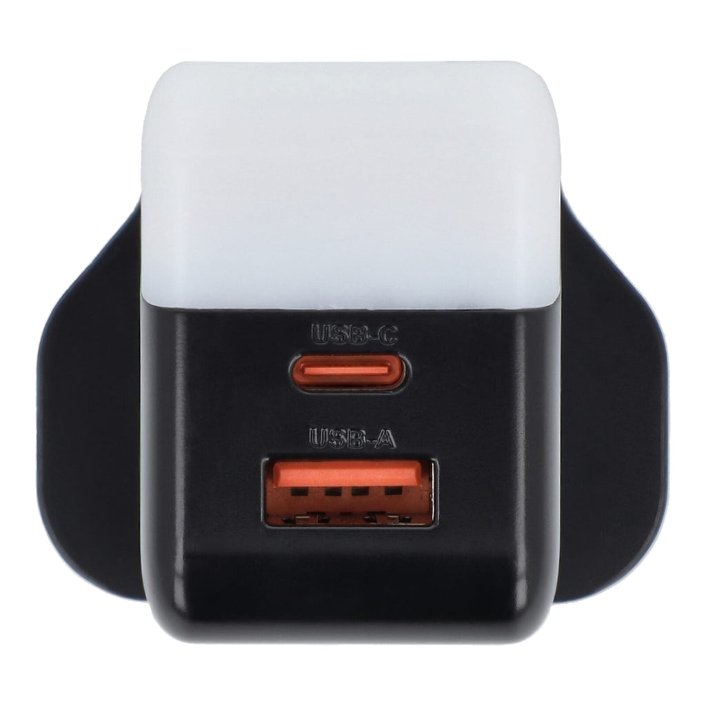 Alimentatore GaN compatto da 65 W per laptop, tablet e smartphone. Porte USB-A (18 W) e Type-C (65 W), anche insieme (9 W ciascuna). Spia intelligente si spegne a carica completa. Plastica riciclata ignifuga. Disponibile solo nel Regno Unito.