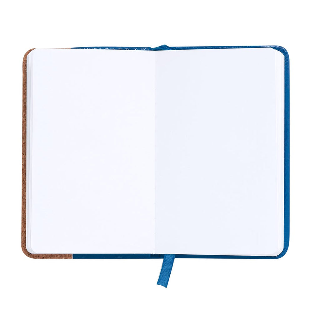 Block notes con copertina rigida lavorata con pregiato sughero. Include 80 fogli lisci con rilegatura elastica e segnalibro in tessuto abbinato. Disponibile in un'ampia gamma di colori, con esterno in sughero naturale e finta pelle. Presentato in un sacchetto individuale. Realizzato con elementi vegetali per promuovere l'uso di materie prime naturali e ridurre le emissioni inquinanti.