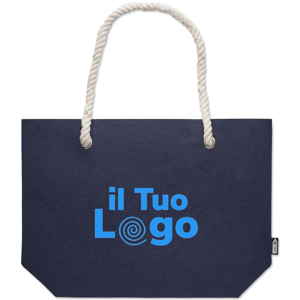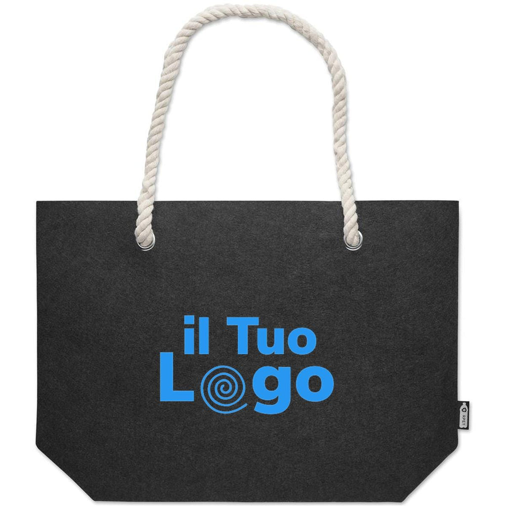 Borsa da spiaggia o shopper in feltro RPET con manico in corda. Spessore del feltro: 2 mm.