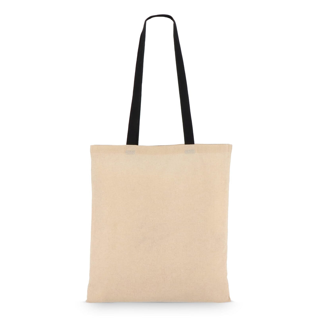 Classica tote in cotone 140 g/m² con corpo naturale e manici colorati a contrasto. Manici lunghi per un comodo trasporto a spalla. Certificato Oeko-Tex®. Ideale per eventi, vendita al dettaglio o uso quotidiano.