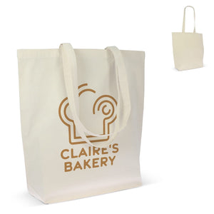 L'articolo Borsa in cotone organico naturale lunga 270g/m² 42x12x43 cm è una shopper ecologica che può essere personalizzata con il tuo logo.