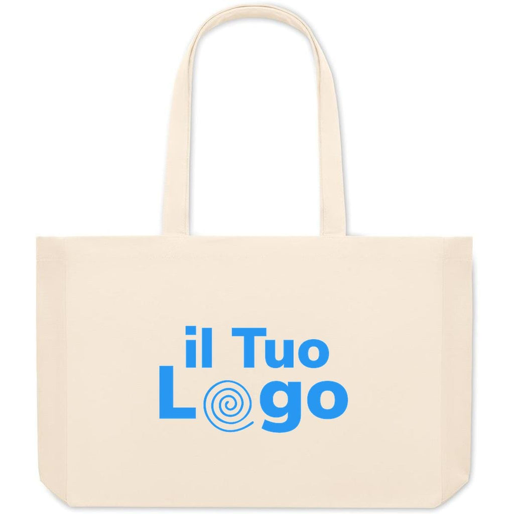 Shopper o borsa da spiaggia in tela riciclata con manici lunghi e soffietto. 280 gr/m².