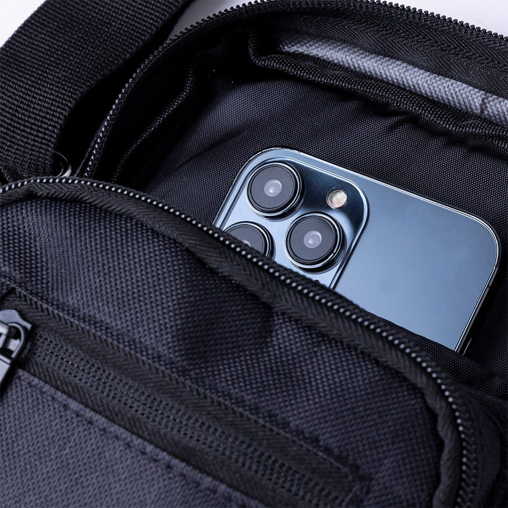 Borsa a tracolla realizzata in poliestere RPET 600D, dotata di una tasca centrale con zip e doppio tiretto e di due scomparti anteriori con chiusura a zip ad accesso rapido. Dotata di una tracolla regolabile per il massimo comfort e di un'etichetta distintiva RPET. Confezionata singolarmente in un sacchetto riciclato.Il materiale RPET è realizzato con plastica riciclata, favorendo così il riutilizzo dei rifiuti plastici e aiutando la sostenibilità del pianeta.