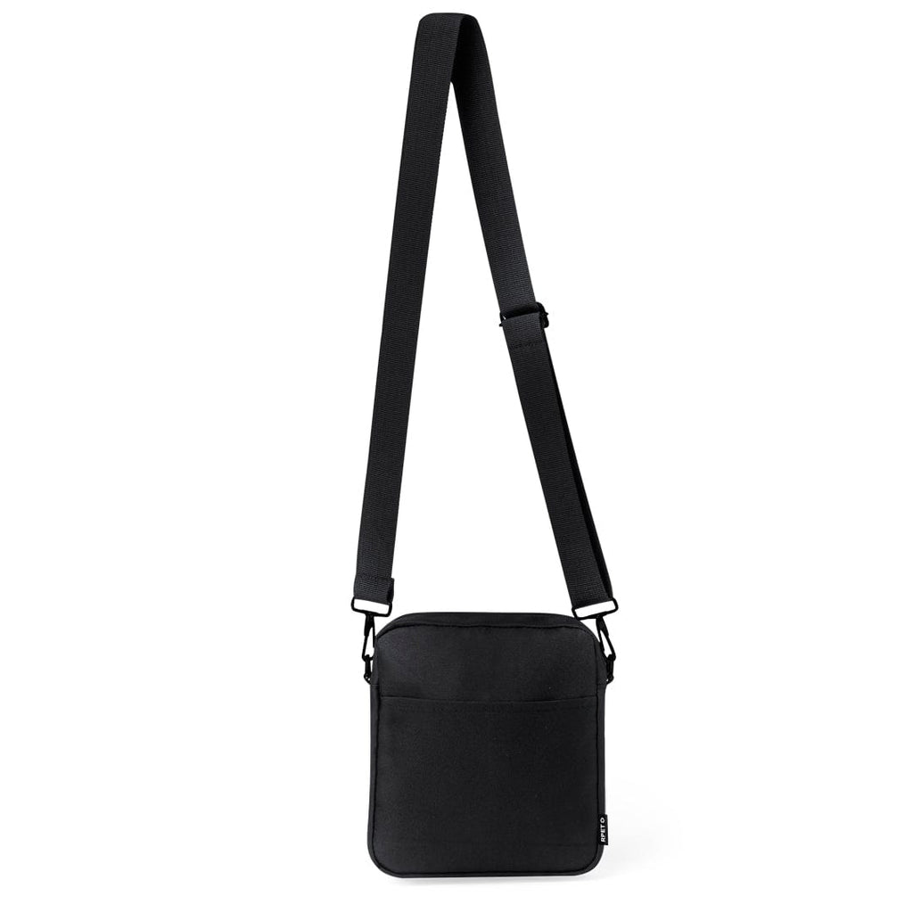 Borsa a tracolla in poliestere RPET 600D, dotata di una tasca centrale con zip e di uno scomparto anteriore di facile accesso. Dotata di una tracolla regolabile per il massimo comfort e di un'etichetta distintiva RPET. Confezionata singolarmente in un sacchetto riciclato. Il materiale RPET è realizzato con plastica riciclata per incoraggiare il riutilizzo dei rifiuti plastici e contribuire alla sostenibilità del pianeta.