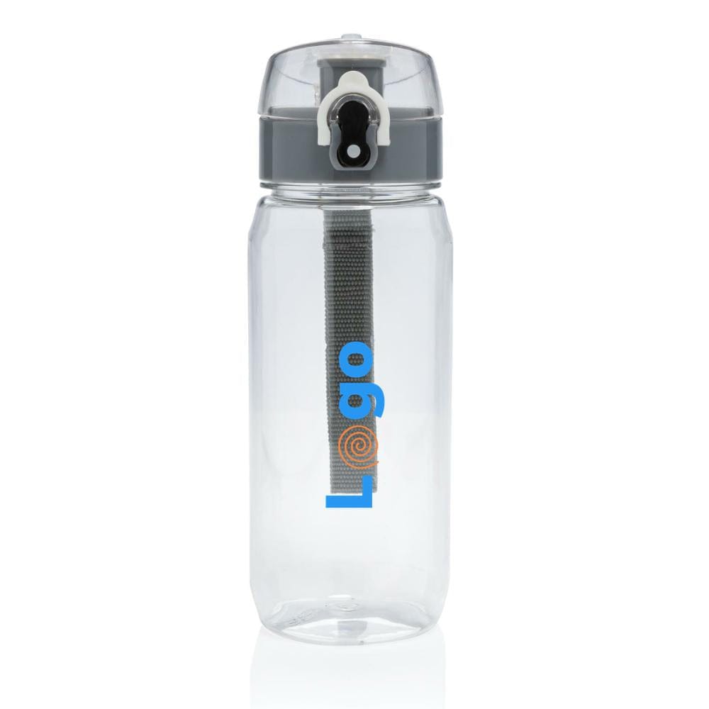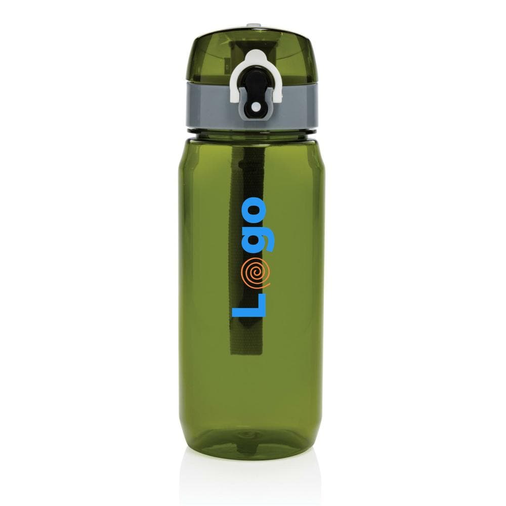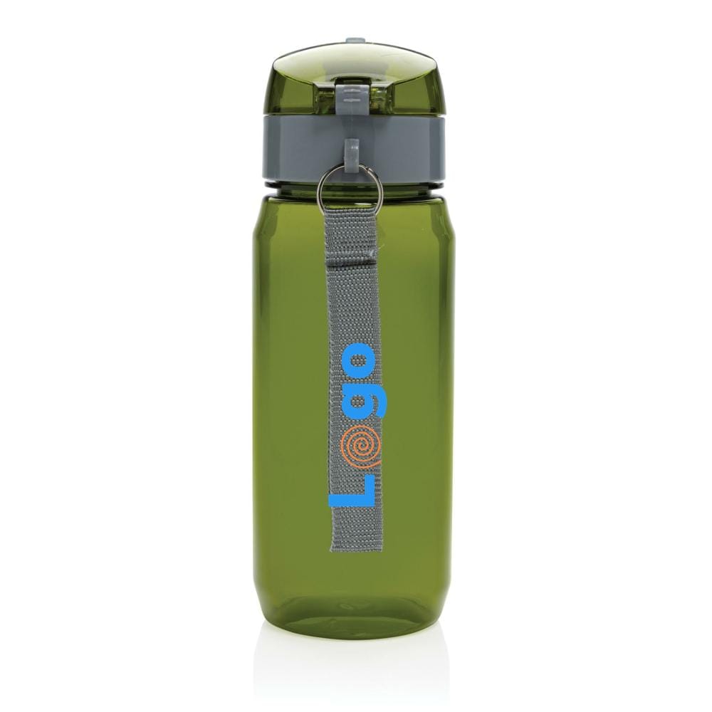 Questa bottiglia d'acqua in rpet RCS è a prova di perdite e dispone di un coperchio richiudibile e azionabile con una sola mano. È inoltre dotata di una maniglia che ne facilita il trasporto. Il corpo della bottiglia è realizzato al 100% in RPET certificato RCS. La certificazione RCS garantisce una catena di approvvigionamento dei materiali riciclati completamente certificata. Lavare solo a mano. Questo prodotto è solo per bevande fredde. Contenuto totale di materiale riciclato: 73% in base al peso totale dell'articolo. Senza BPA. Capacità 600 ml. Inclusa confezione regalo in kraft certificata FSC®.
