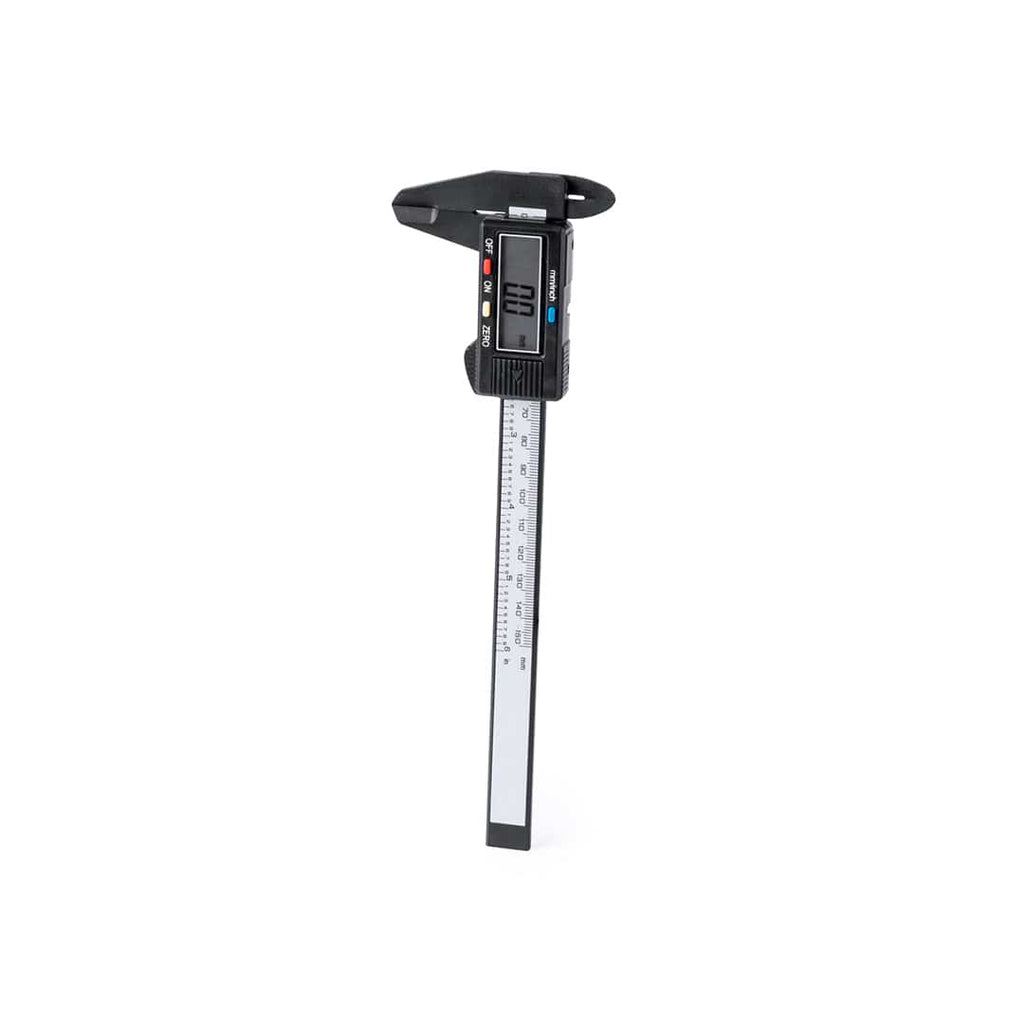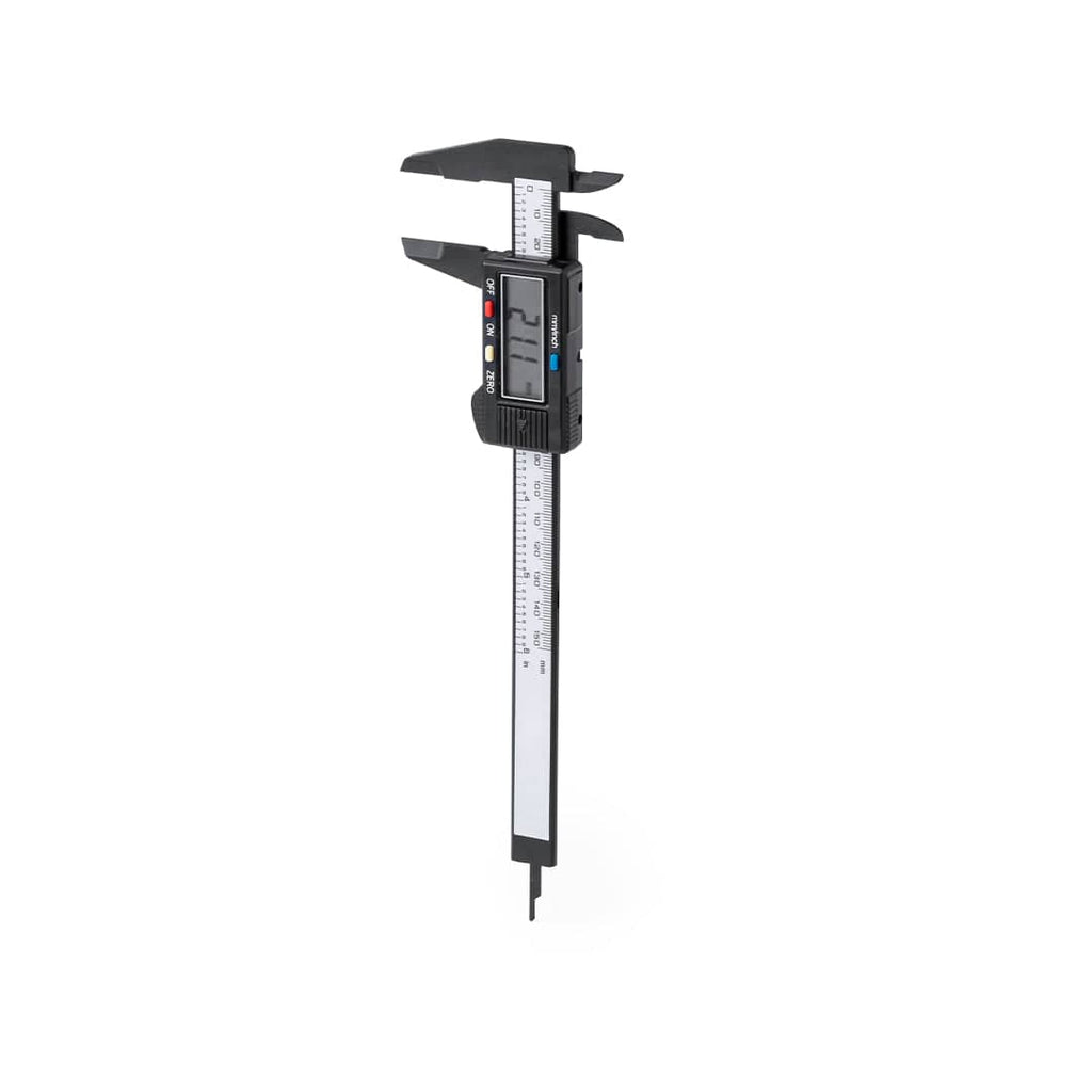 Calibro a corsoio con modalità di misurazione digitale e analogica. Dotato di schermo LCD e pulsanti ON/OFF, ZERO per la regolazione e un altro per selezionare la misura in mm o pollici. Include sonda per misurare la profondità e pinzetta per misurare l'interno degli oggetti. Campo di misura fino a 150 mm, con istruzioni in spagnolo e inglese e presentato in una scatola dal design kraft individuale.