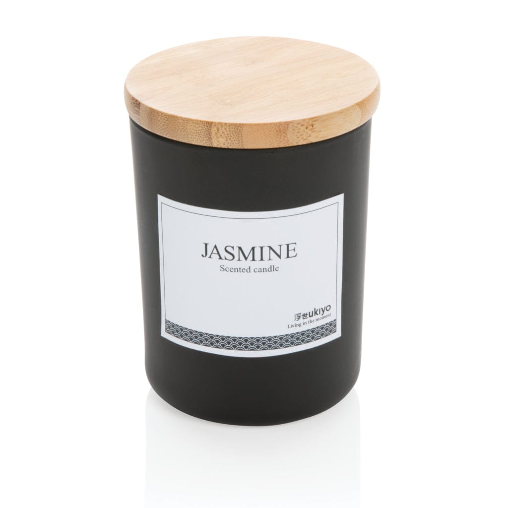L'articolo Candela profumata deluxe Ukiyo con tappo in bambù è una candela ecologica in bambù che può essere personalizzata con il tuo logo.