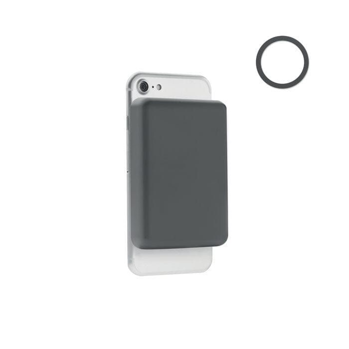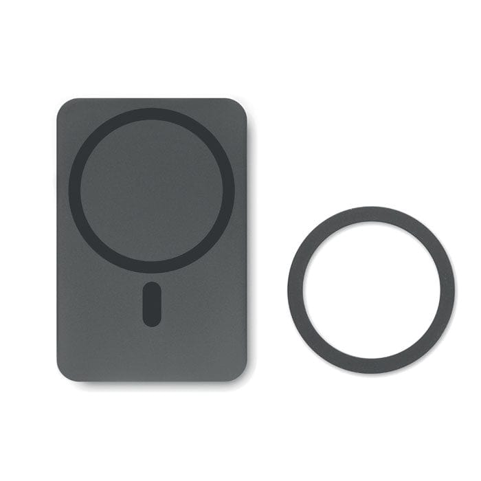 Caricatore wireless magnetico in bamboo (15W) e PB (5000 mAh). Uscita: DC 9V/1.1A (15W). Compatibile con iPhone® 12 e successivi. Include un anello metallico magnetico per la ricarica di altri telefoni.