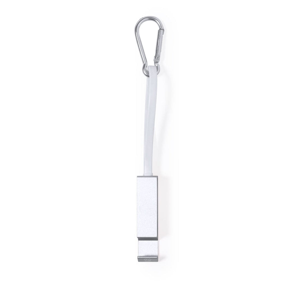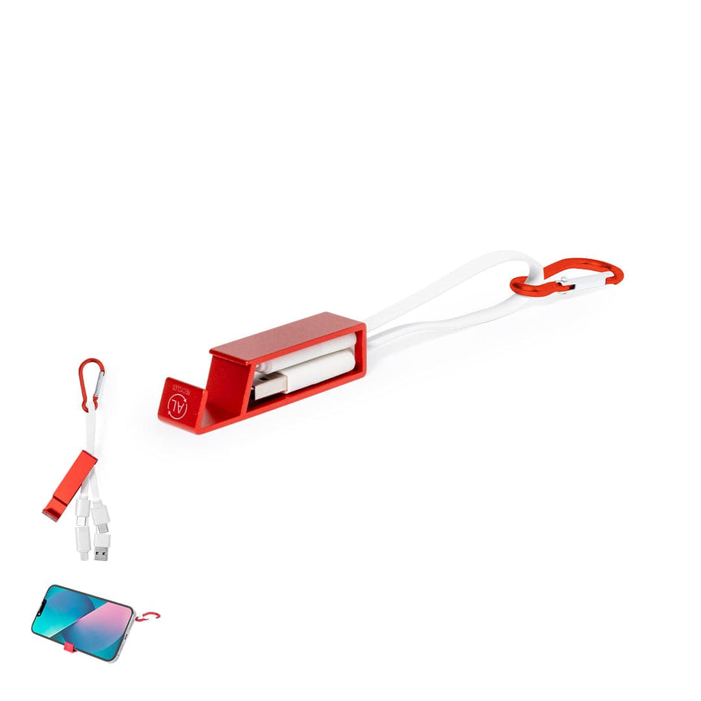 Cavo di ricarica multifunzionale, realizzato in Alluminio Riciclato con un design ingegnoso che consente di riporre comodamente i cavi di ricarica e di trasportarli facilmente. Include un moschettone e un supporto per smartphone coordinati, con connessione di tipo C (ingresso e uscita) e doppia Micro USB / Lightning. In vari colori con finitura metallica e logo Recycled Aluminium. Presentato in una borsa riciclata individuale.L'Alluminio Riciclato è un materiale con possibilità di riciclaggio quasi infinite, senza perdere le sue proprietà originali e consumando meno energia nel processo.Certificazione GRS (Global Recycled Standard), che garantisce l'origine riciclata del materiale utilizzato per la fabbricazione del prodotto.