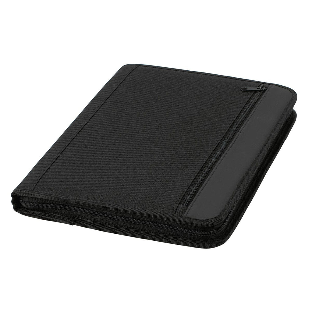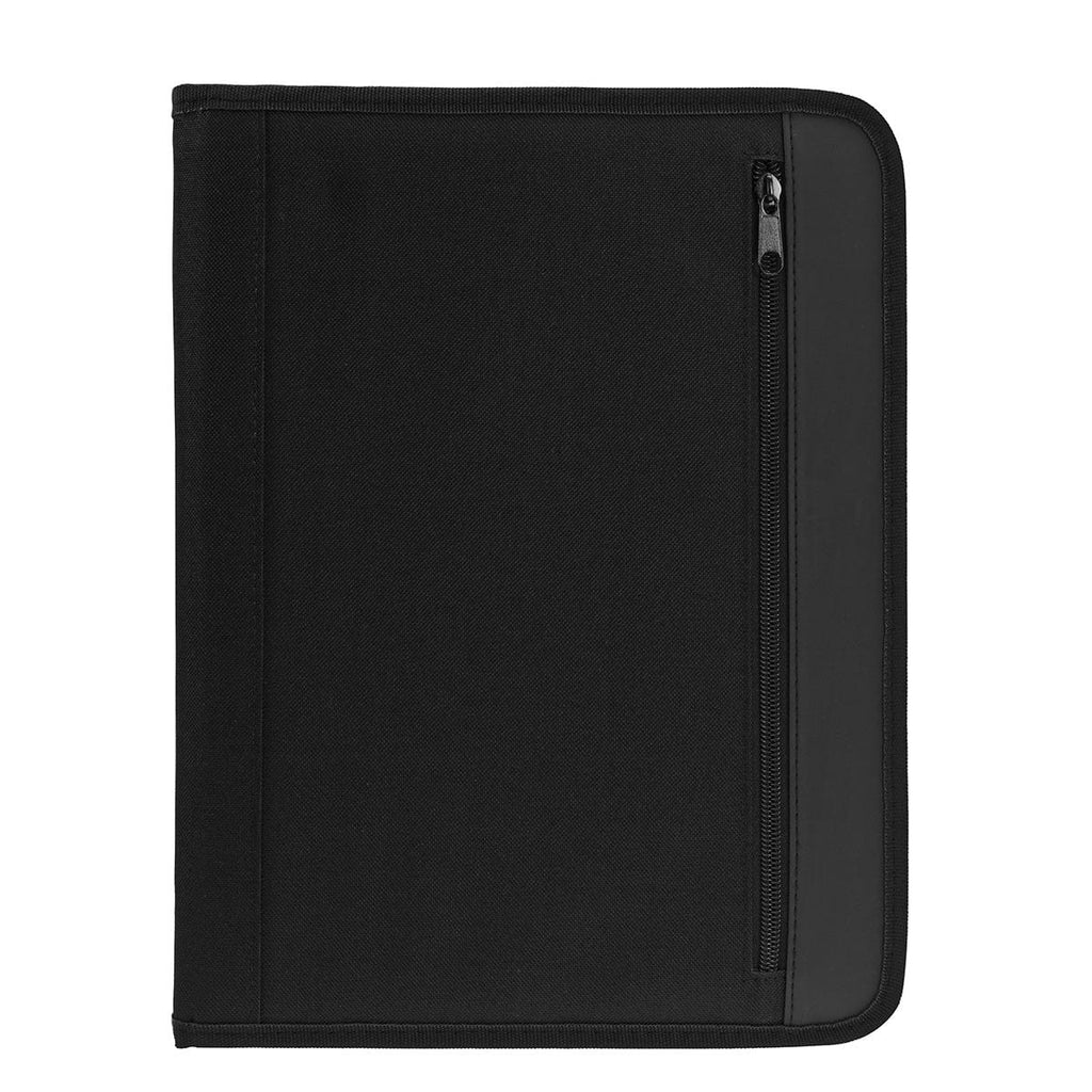 Portablocco con elementi organizer, chiudibile con cerniera, blocco, 2 anelli, scomparto piatto, scomparto con cerniera sulla patta. Dim. bxhxp: 26x35x3. Area di stampa: 10 x 8 cm.