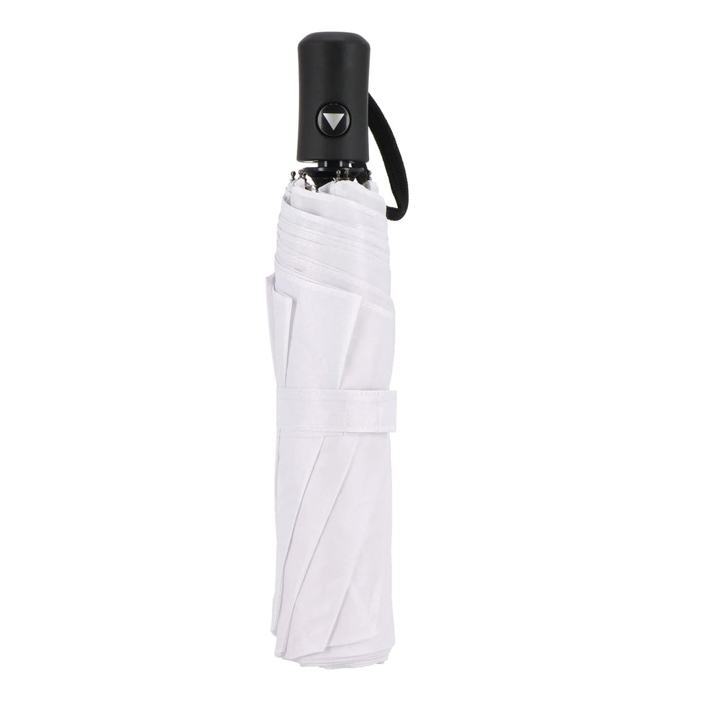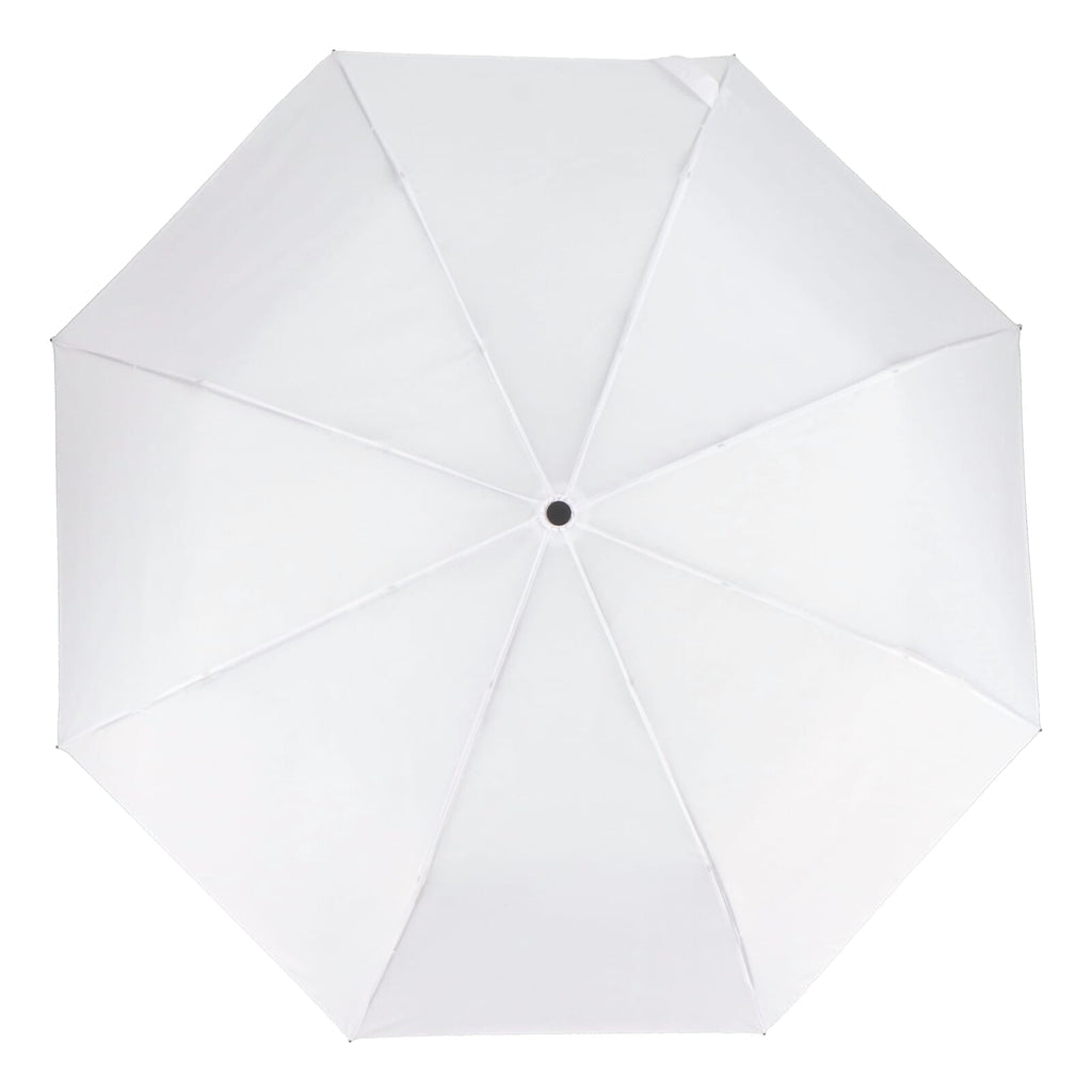 Ombrello pieghevole da 21.5" con telaio in fibra di vetro e tettuccio in Pongee 190T resistente al vento. Apertura automatica, chiusura manuale. Dotato di custodia, cordino e manico in ABS per una presa comoda.