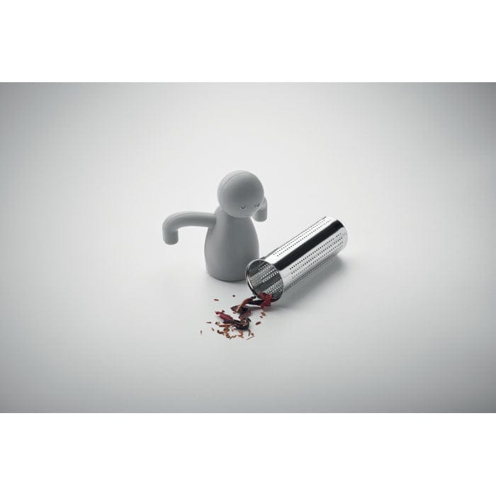 Infusore per tè sfuso in foglie. Forma di omino in silicone e filtro in acciaio inox.