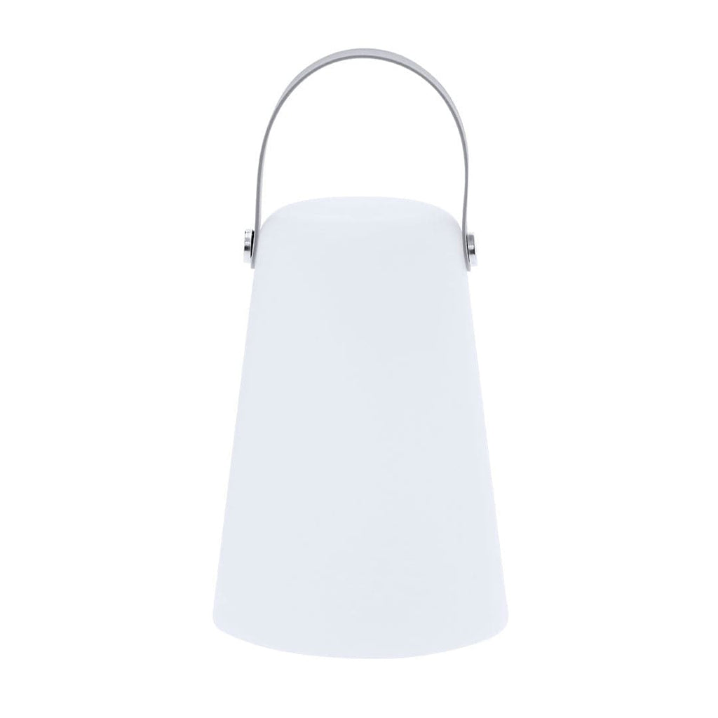 Lampada in PE di colore bianco. Include una maniglia superiore in morbida silicone grigio, che facilita il trasporto e aggiunge un tocco moderno al design. Equipaggiata con 4 LED, fornisce una luce uniforme ed efficiente, sia per interni che per esterni. Funziona con 3 batterie AA (non incluse). Dispone di un pulsante di accensione/spegnimento.