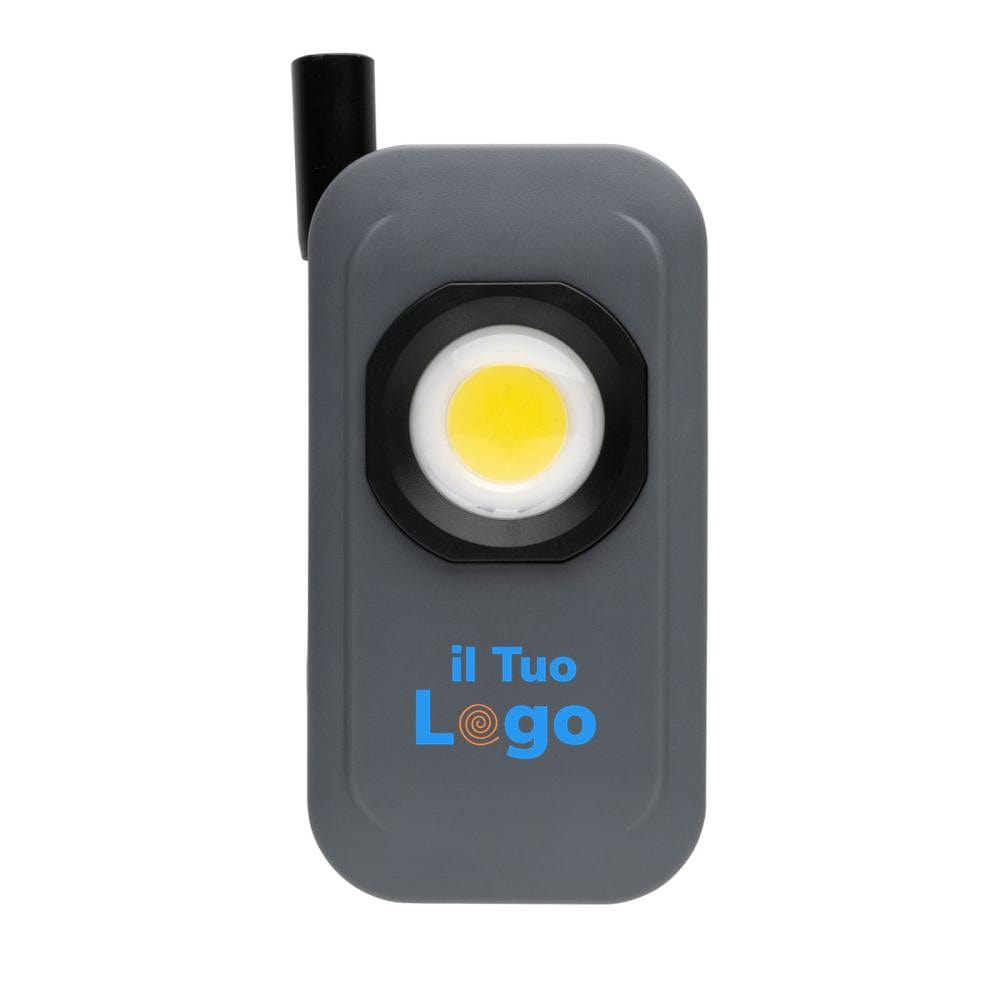 L'articolo Luce da lavoro Gear X in rPlastica ricaricabile USB con Led estensibile è un utensile ecologico in materiale riciclato che può essere personalizzato con il tuo logo.