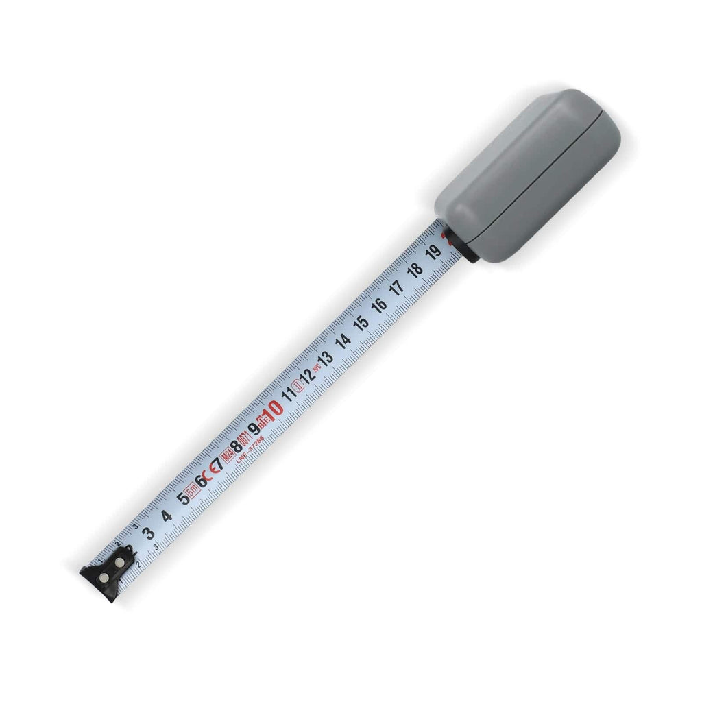 Resistente metro a nastro da 5 metri in ABS riciclato, con larghezza di 19 mm e rigidità fino a 1,7 m. Ha una superficie piatta ideale per il branding. Soddisfa gli standard CEE di classe MID II per misure accurate.