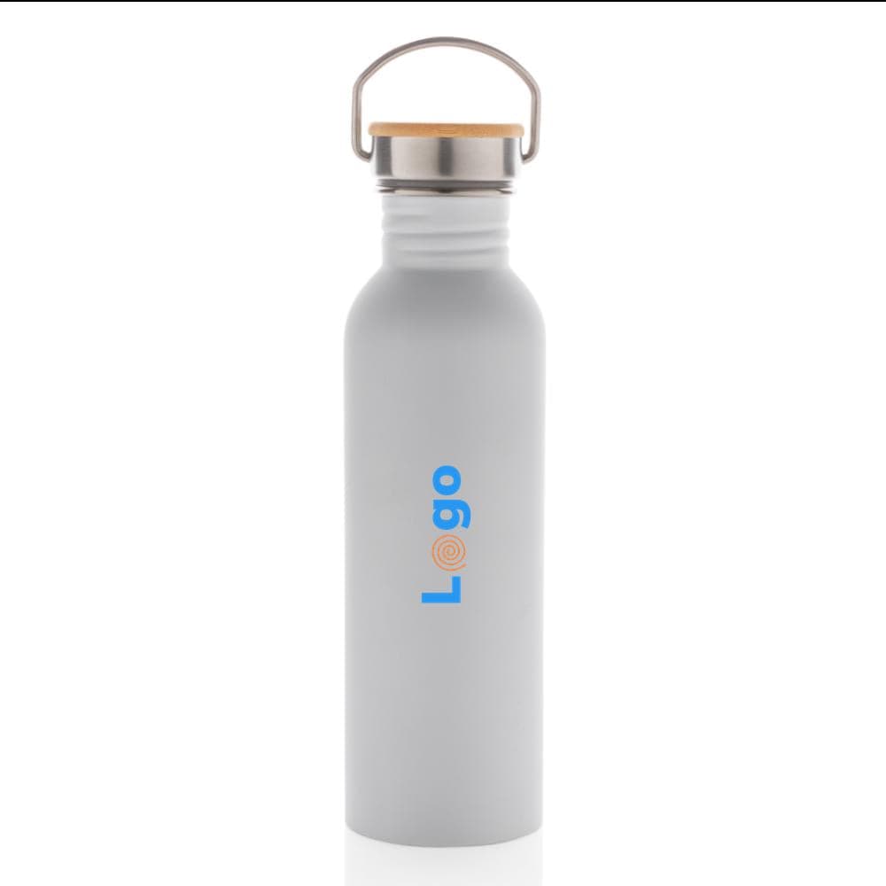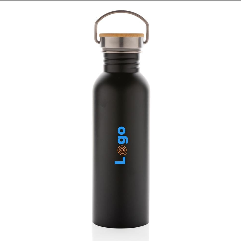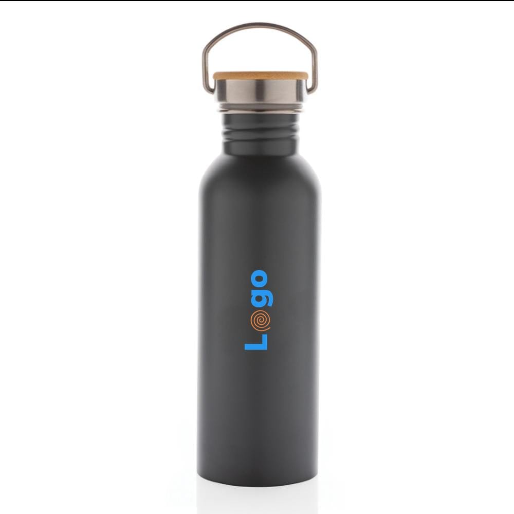 L'articolo Moderna bottiglia in acciaio con tappo in bambù 700ml è una borraccia ecologica in bambù che può essere personalizzata con il tuo logo.