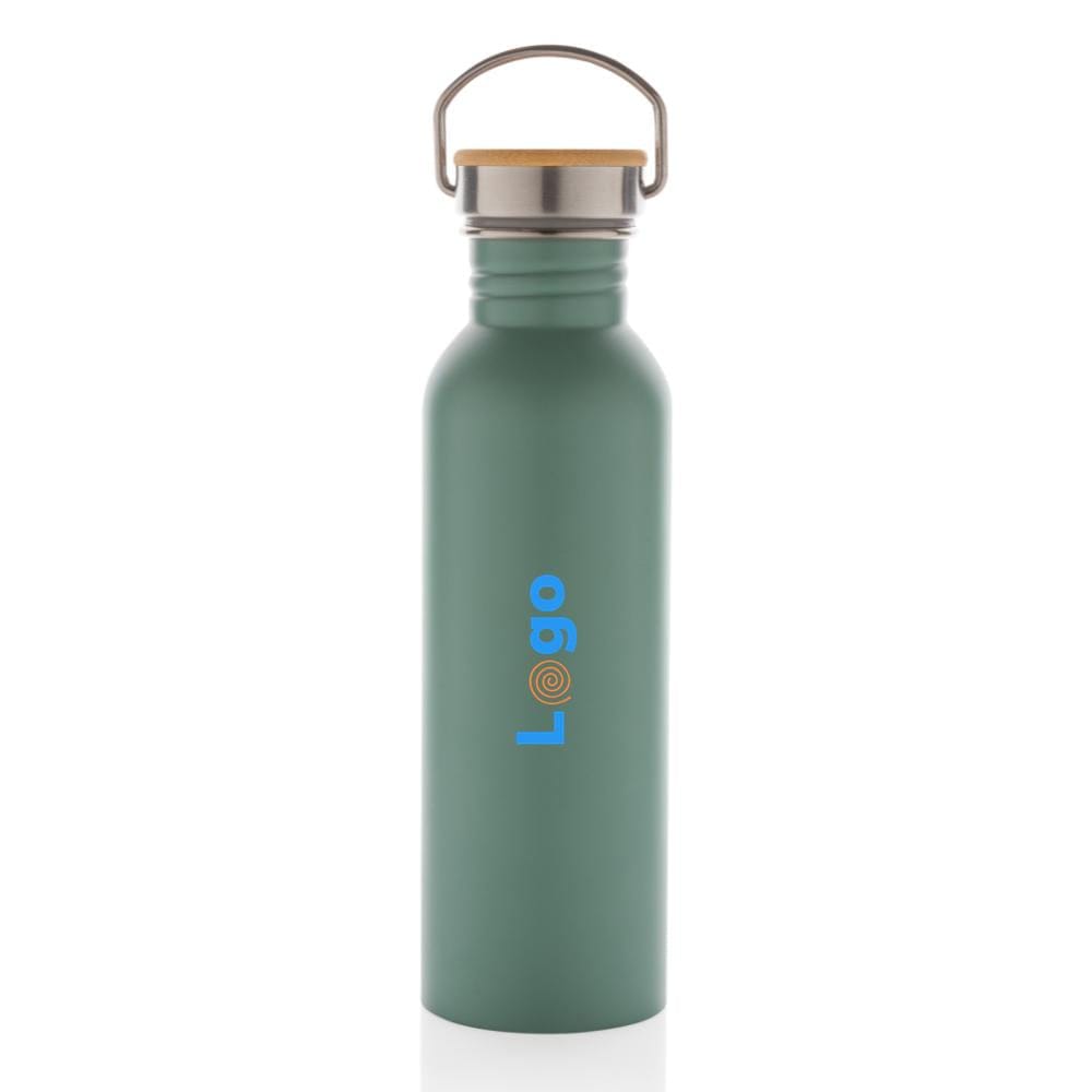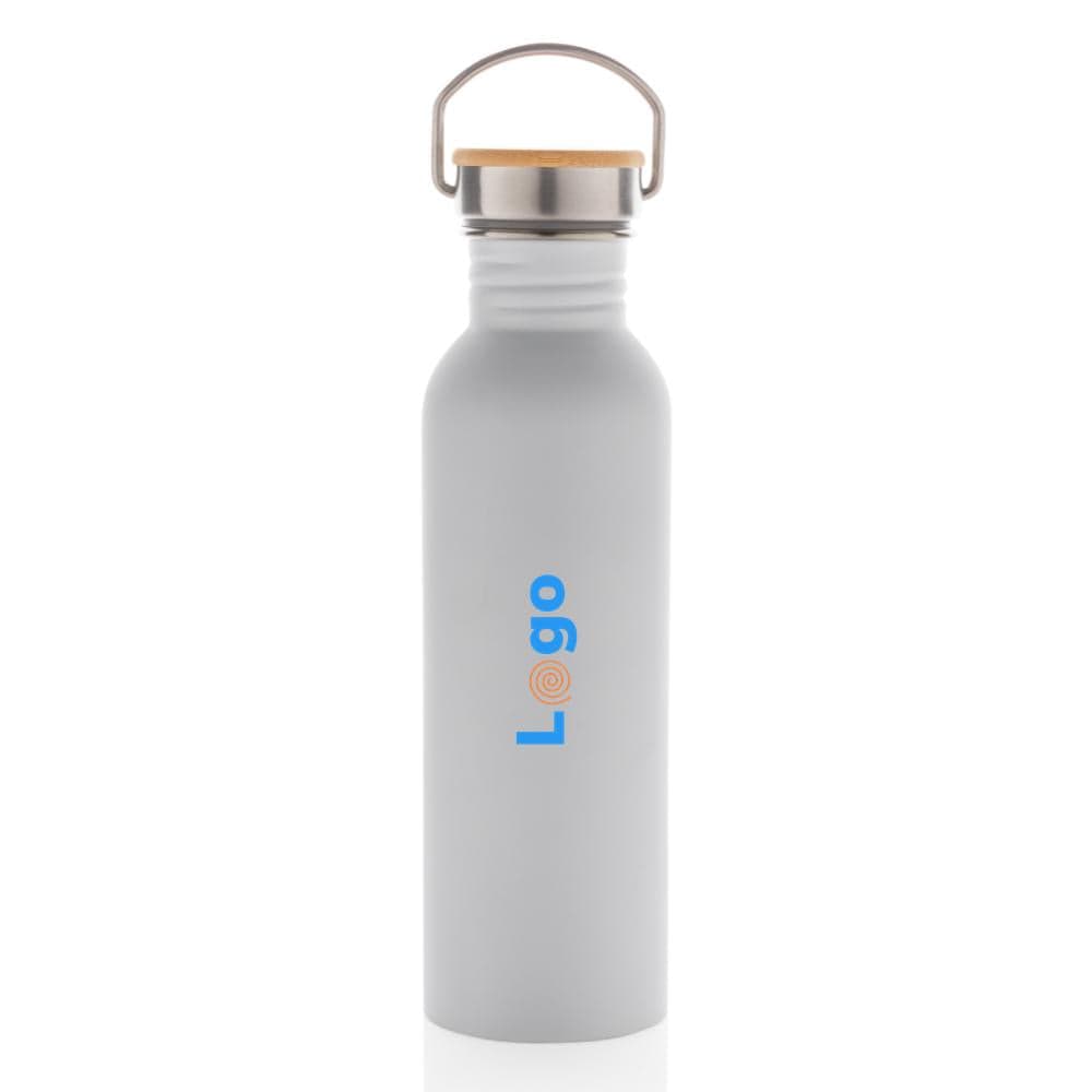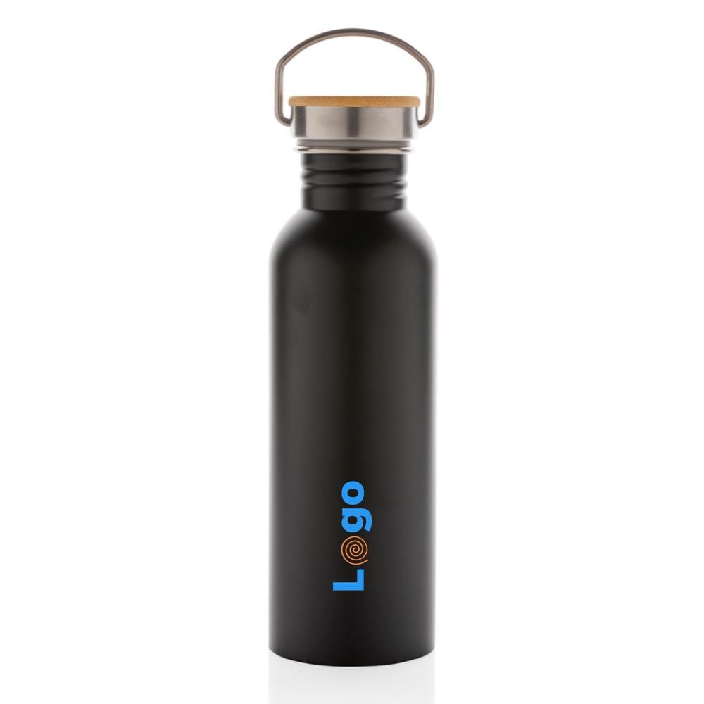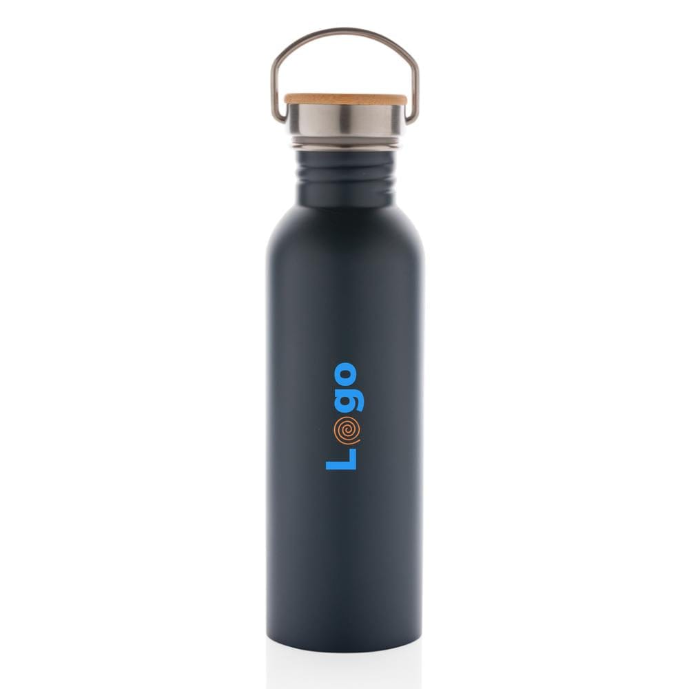L'articolo Moderna bottiglia in acciaio con tappo in bambù 700ml è una borraccia ecologica in bambù che può essere personalizzata con il tuo logo.