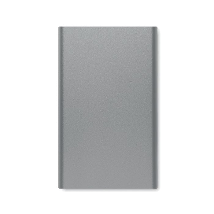 Power bank da 4000 mAh in alluminio. Corrente di uscita DC5V/2A. Include spia luminosa e cavo USB di tipo C.