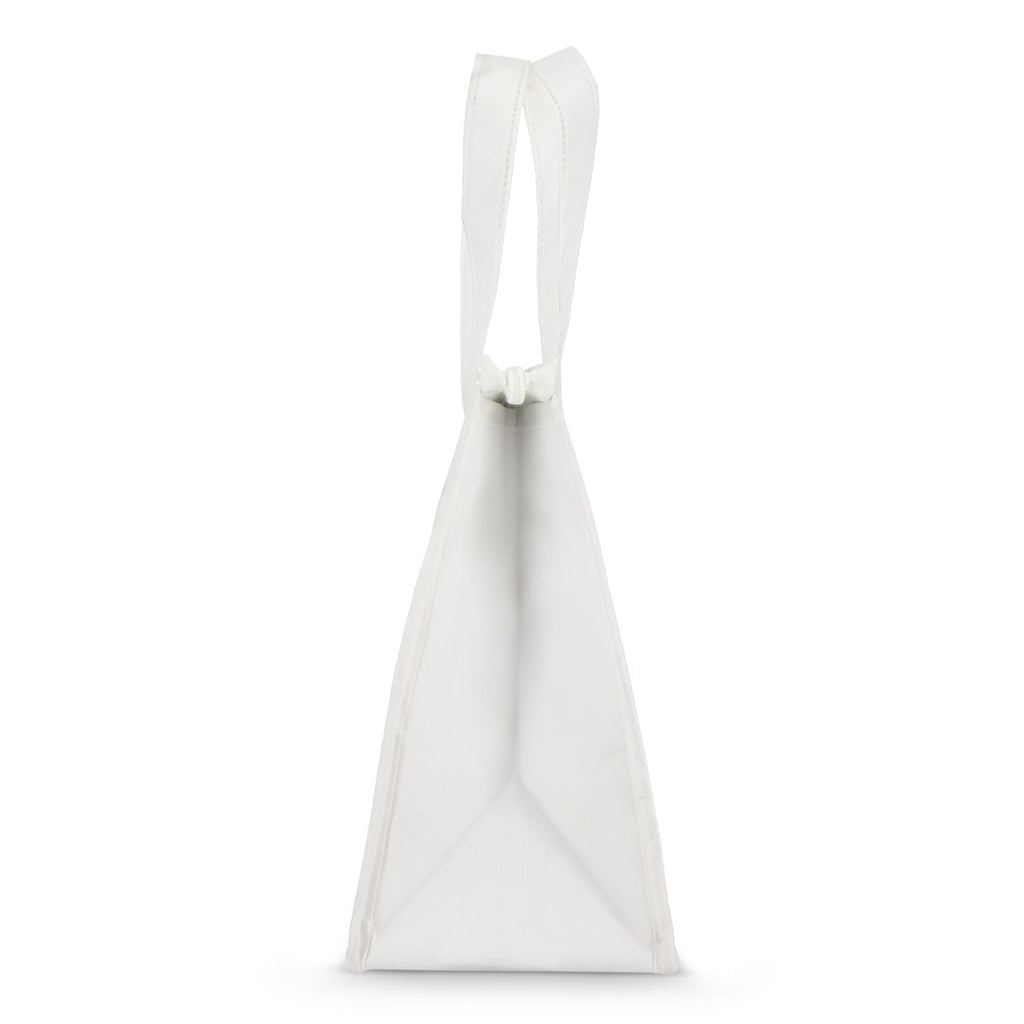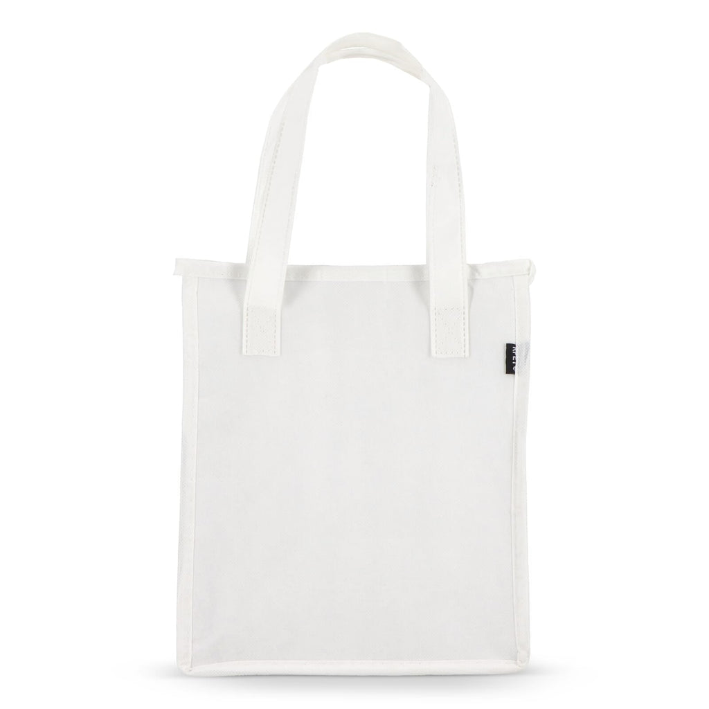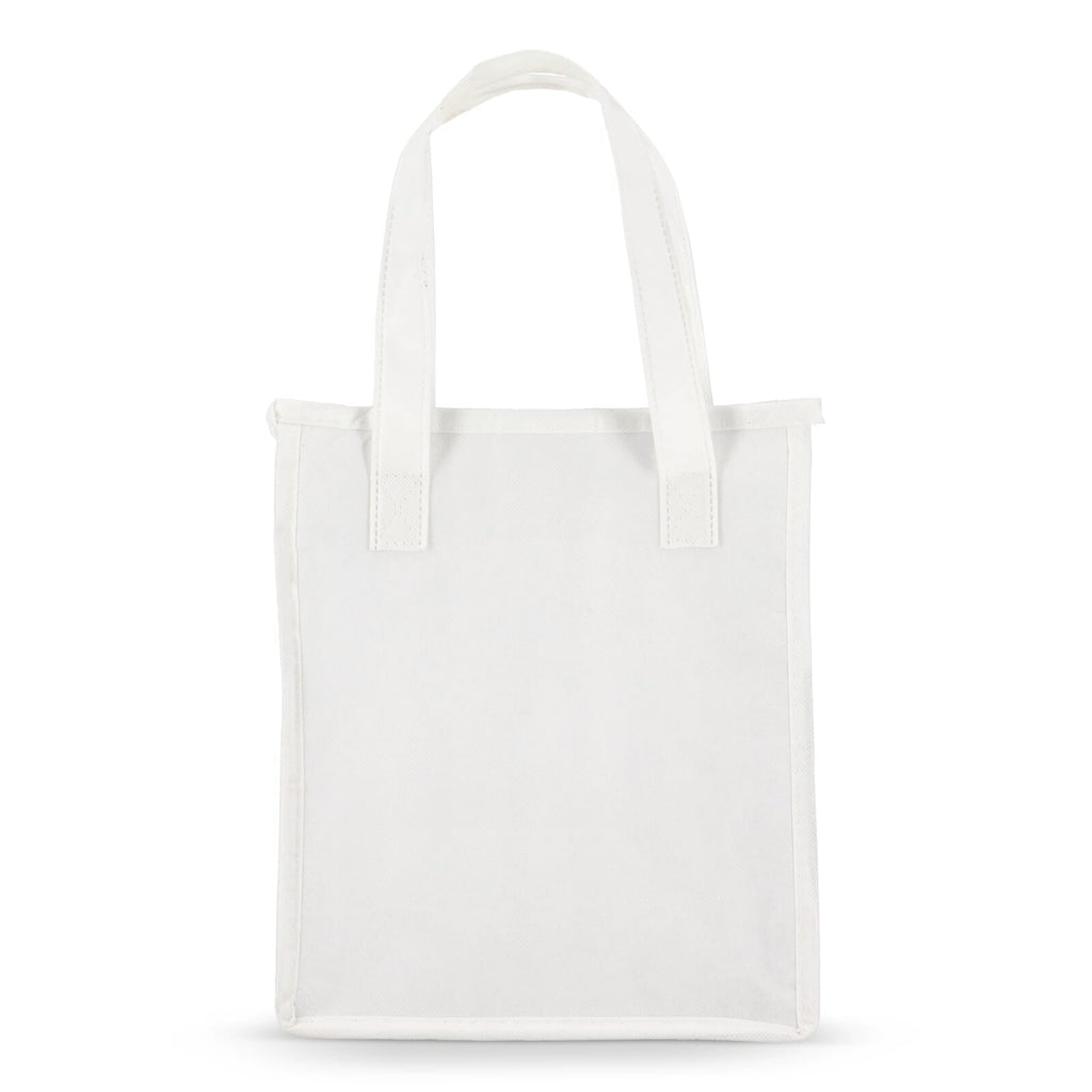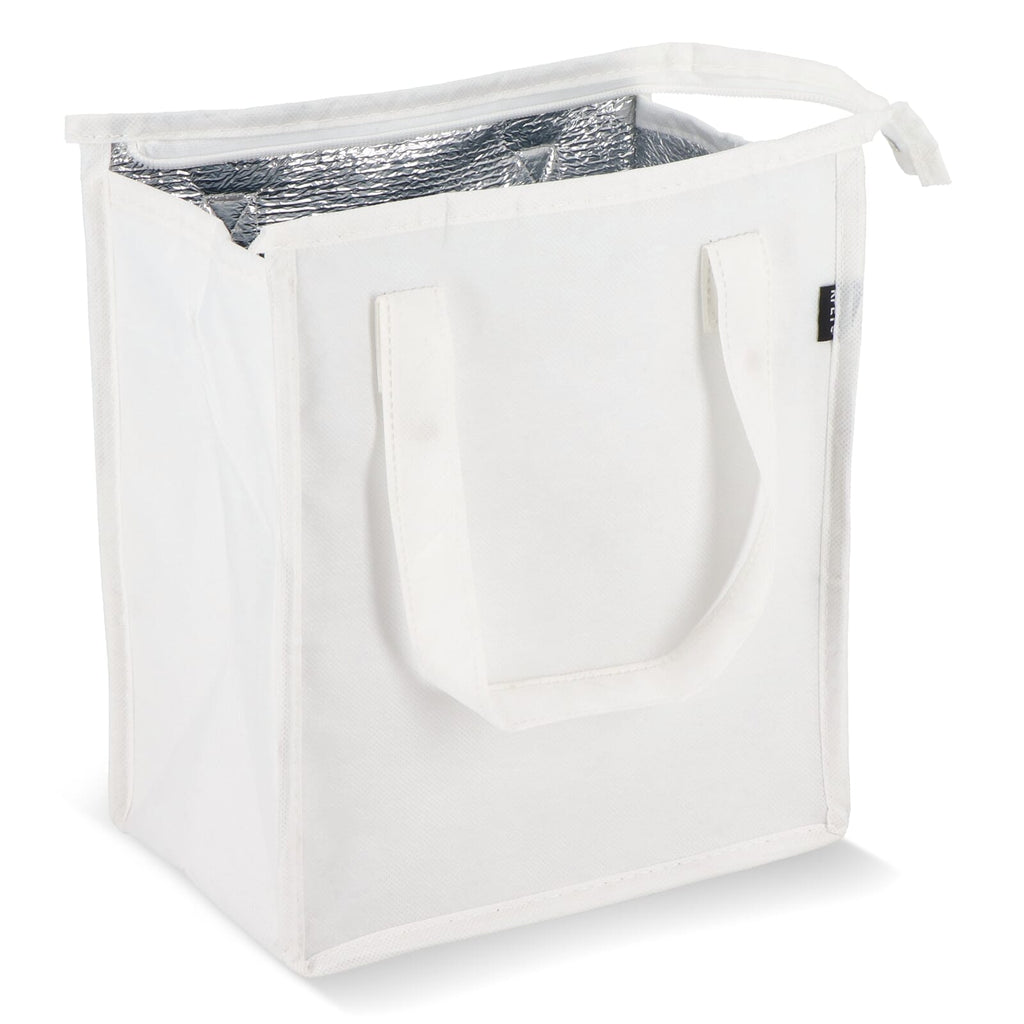 Borsa termica per il pranzo in materiale non tessuto PET riciclato (75g/m²) con rivestimento in foglio di alluminio. Compatta e pratica.