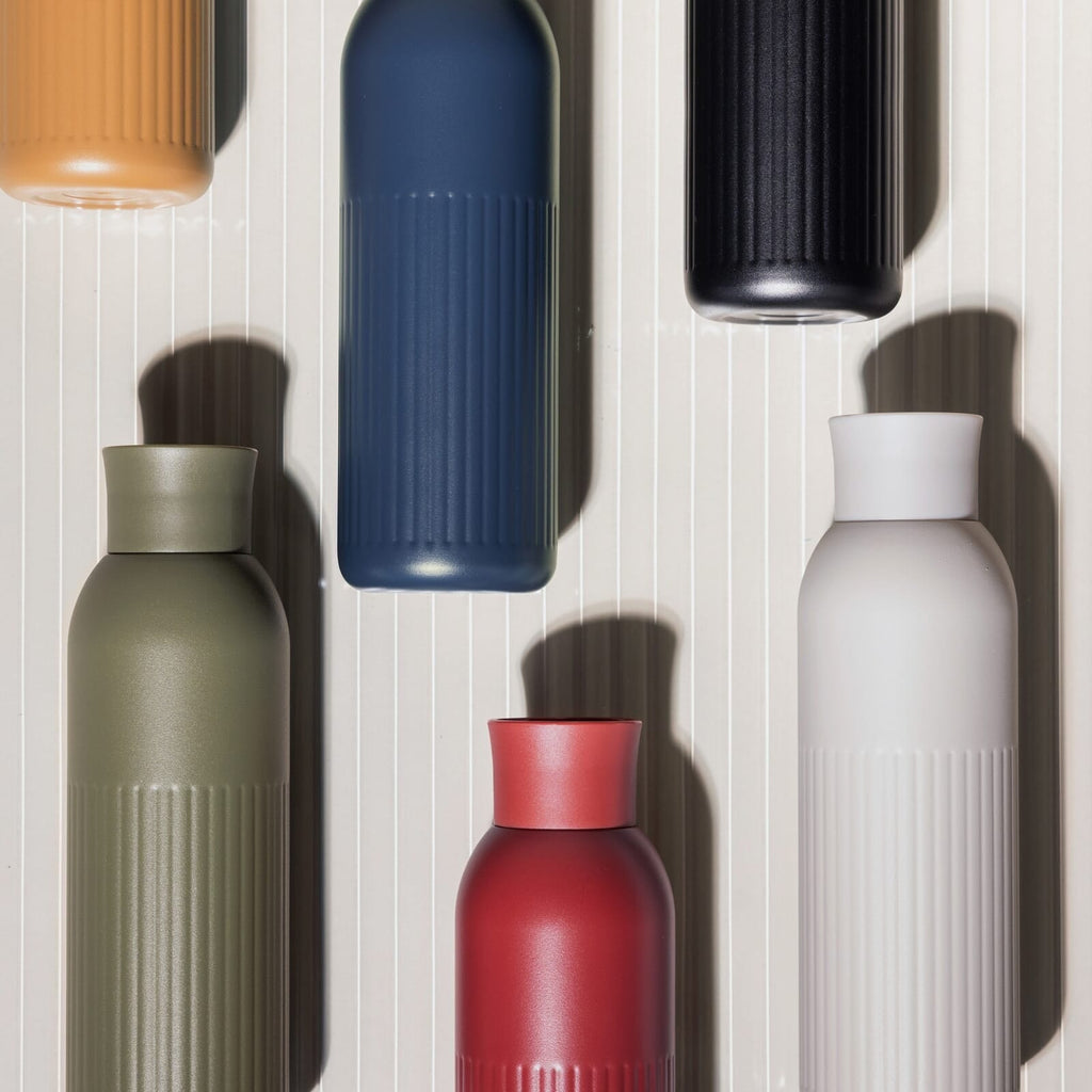 Sagaform Tekla Push unisce design scandinavo e funzionalità. Acciaio riciclato con isolamento sottovuoto e rivestimento in rame. Mantiene bevande calde 12h o fredde 24h senza condensa. Tappo a pressione sportivo e a prova di perdite. Verniciata a polvere, lavabile in lavastoviglie.