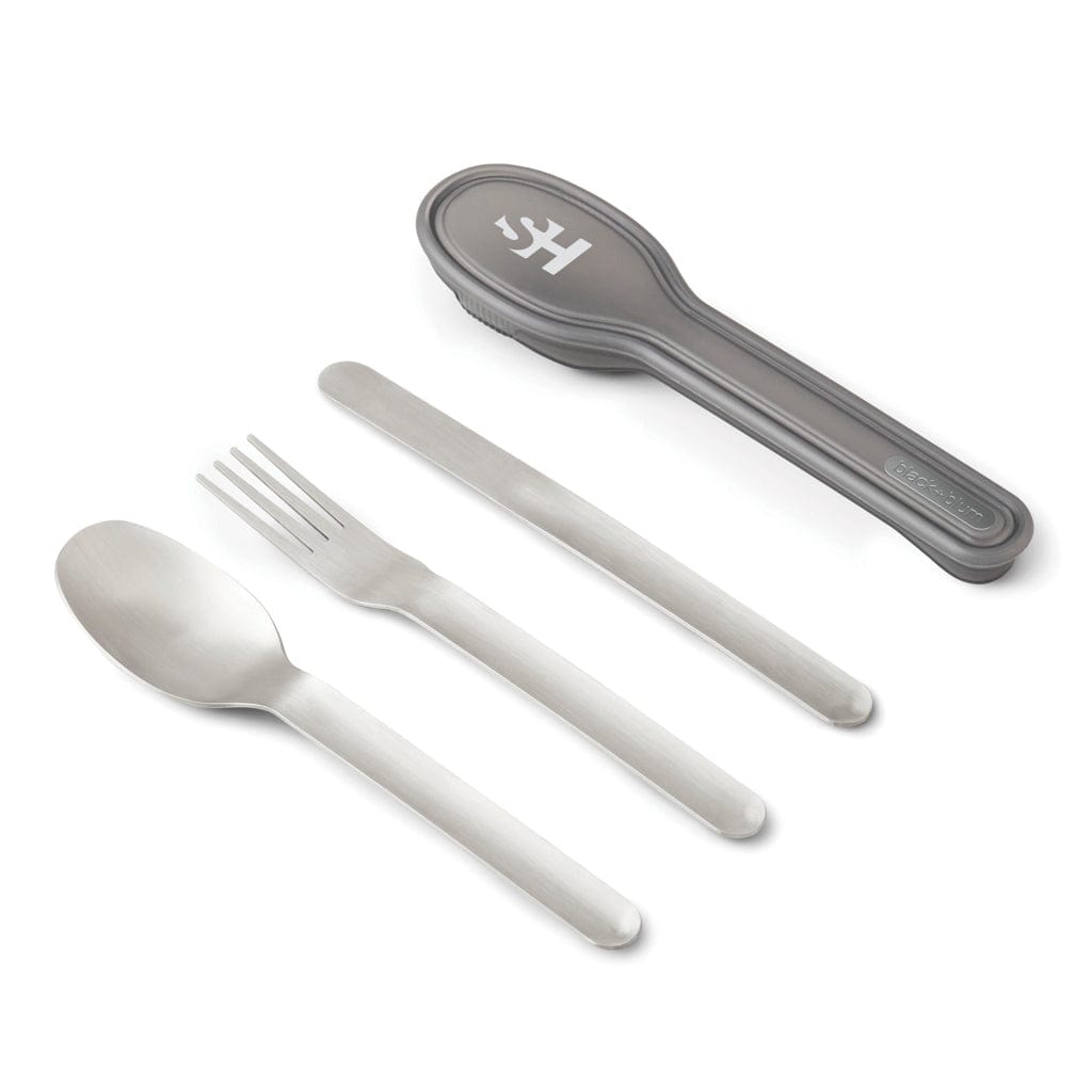 Un set compatto di coltelli, forchette e cucchiai in acciaio inossidabile, facile da usare e che si alloggia all'interno della valigetta per essere trasportato con facilità. Basta con le forchette di plastica o le posate da mensa lavate male. Va in lavastoviglie.