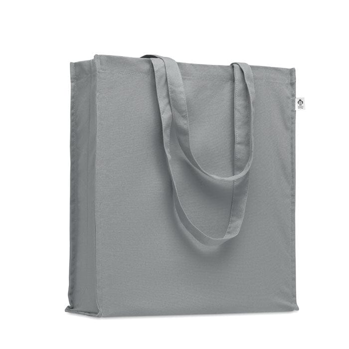 Shopper in cotone biologico con manici lunghi e soffietto. 220 gr/m².