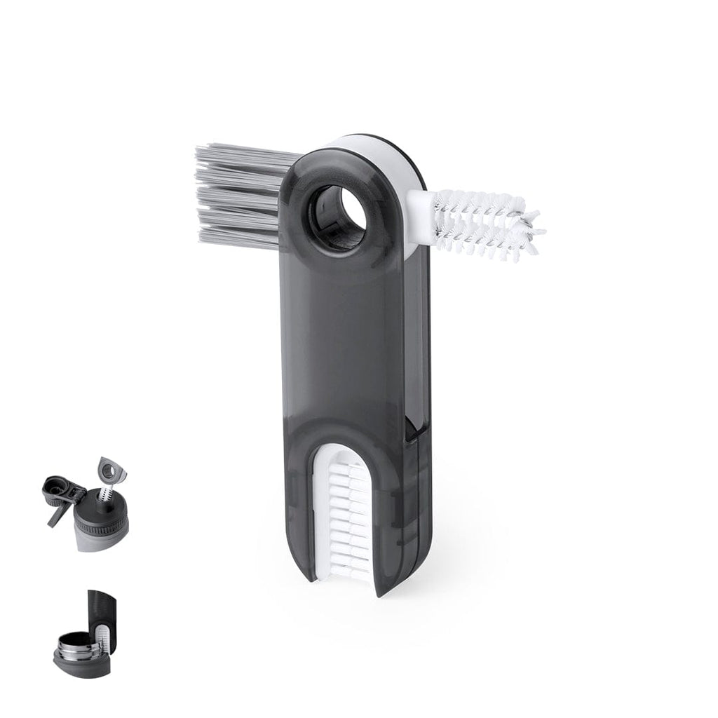 Pratica spazzola di pulizia all-in-one, appositamente studiata per taniche, thermos, tazze, bicchieri e oggetti simili. Include 3 spazzole con diversi tipi di setole, ideali per pulire correttamente le parti dei contenitori più difficili da raggiungere. Realizzato in robusto materiale ABS, con un'area di stampa liscia e presentata singolarmente in una scatola kraft.