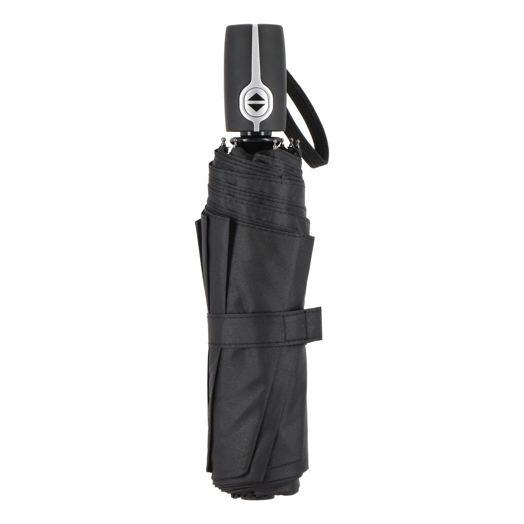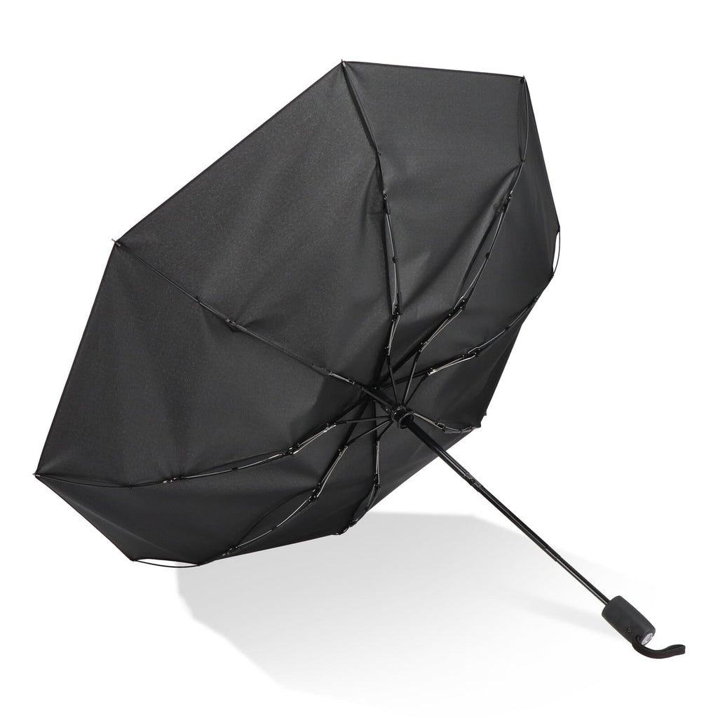 Ombrello pieghevole 21" resistente al vento con struttura in fibra di vetro e tettuccio in Pongee. Apertura/chiusura automatica, custodia, corda di sicurezza e manico ABS comodo.