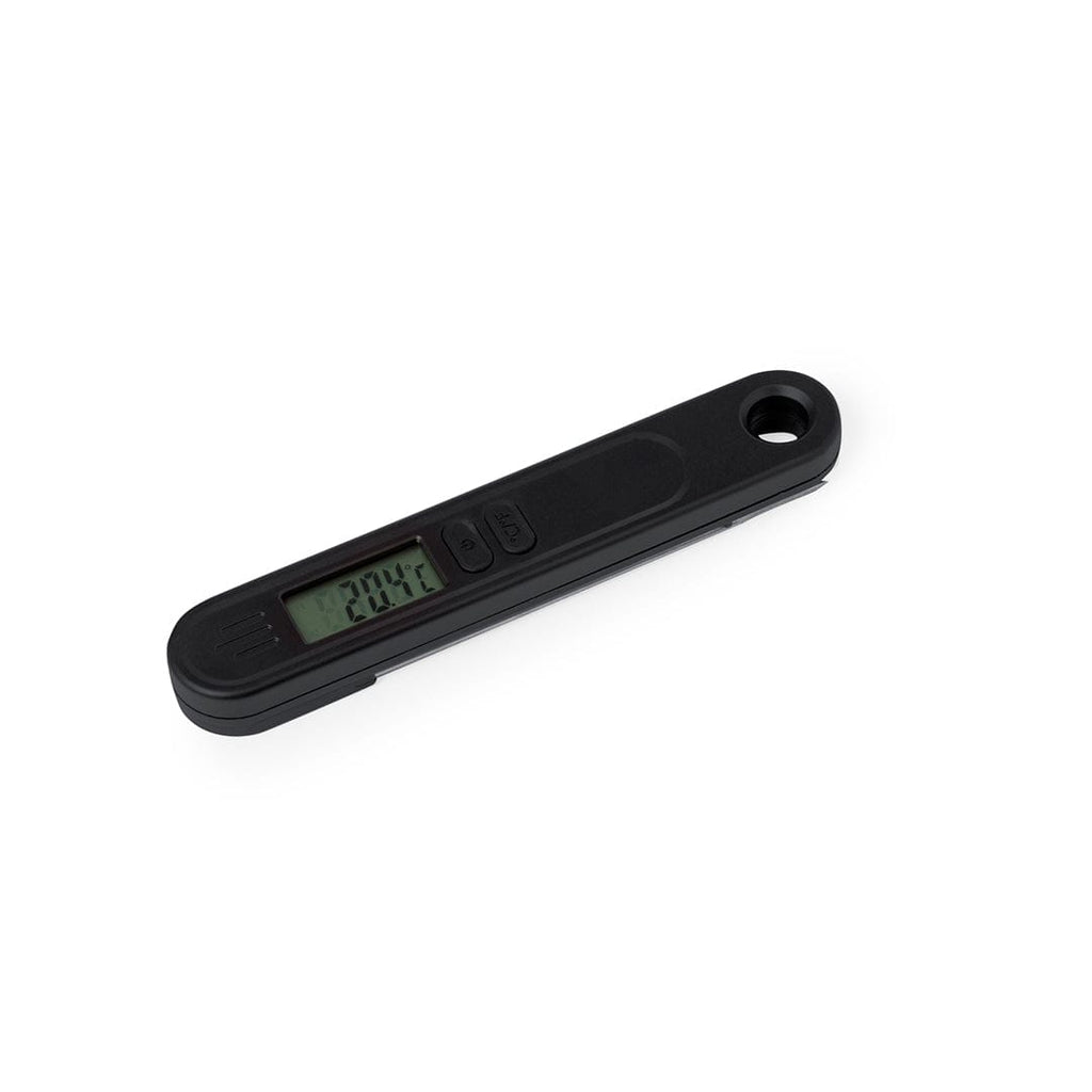 Termometro digitale con sonda metallica. Ottimo per misurare la temperatura all'interno degli oggetti grazie al punzone in metallo. Pratico meccanismo di chiusura per riporlo in tutta sicurezza ovunque, con anello e calamita sul retro. Schermo LCD, con pulsante ON/OFF e possibilità di misurazione in gradi Celsius (Cº) o Fahrenheit (ºF). Intervallo di misurazione tra -50ºC e fino a 300ºC, con manuale di istruzioni in spagnolo e inglese. Alimentato da una batteria a bottone (inclusa) e presentato singolarmente in una scatola di design kraft.