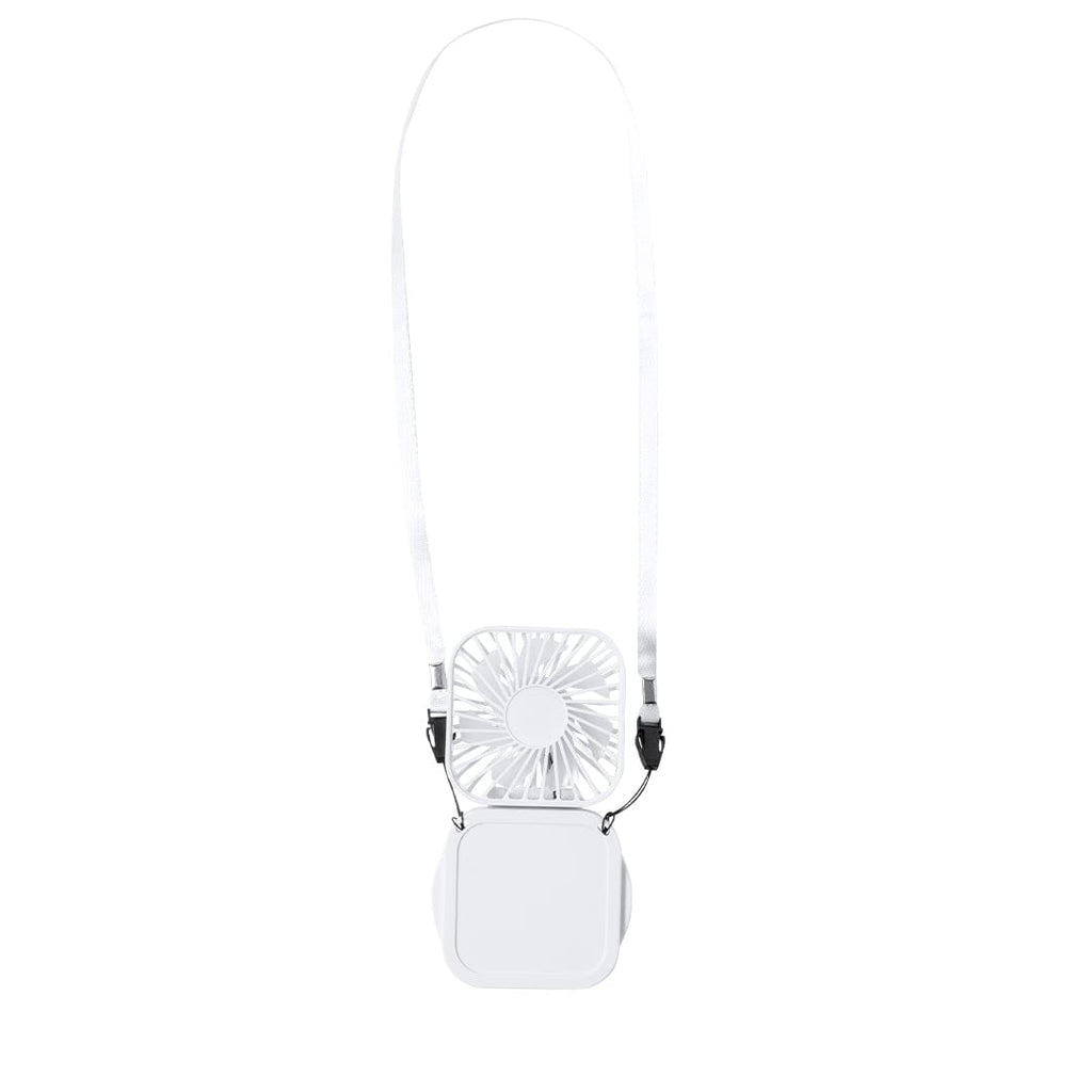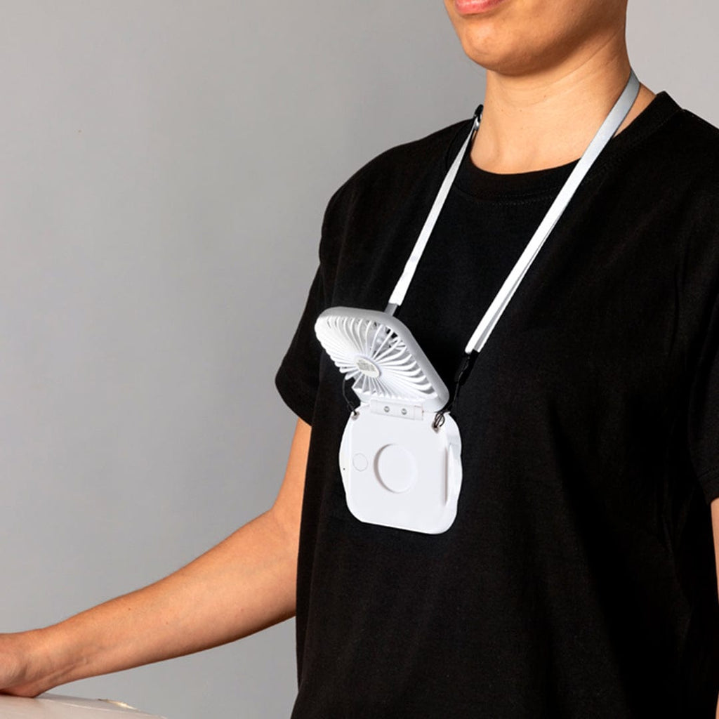Ventilatore portatile realizzato in resistente ABS. Questo pratico dispositivo è dotato di tre velocità, con cordino per un trasporto confortevole. È alimentato da una batteria da 400 mAh, compatibile con connessioni USB, e dispone di indicatori luminosi per conoscere il livello di carica della batteria. Presentato singolarmente in una scatola di design kraft.