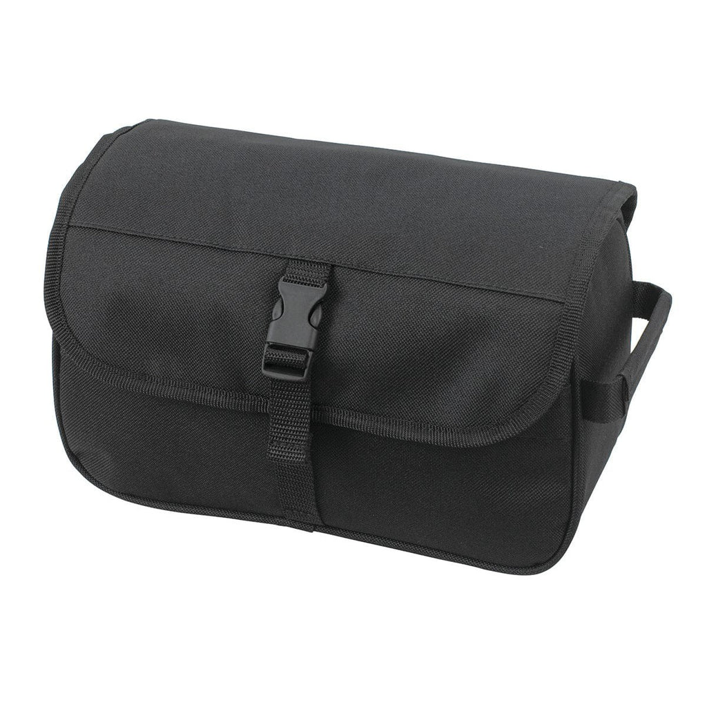 trusse da appendere o appoggiare, scomparto principale imbottito, tre tasche con cerniera, con fibbia ad incastro, maniglia. Dim: bxhxp: 27x16x12. Area di stampa: ai lati 12 x 10 cm, sul fronte: 8 x 4 cm.